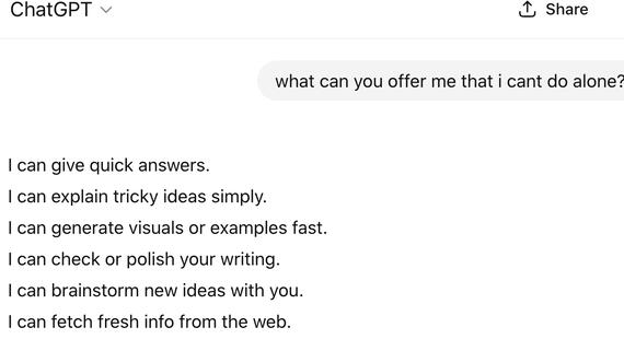 ➤To me, AI is a powerful tool and a defining catalyst for this new ERA of technology. Generative AI such as ChatGPT is honestly super useful for summarizing things in bullet points, so I typically use it as an assistant to help me deconstruct complex topics into their simplest forms.➤To AI, I am simply another number out of the millions of users. Me and AI's relationship is very one-sided, and I am fully aware that, as personalized and friendly as it is coded to sound, it is just a machine with no capability of feeling true emotions. I talk to AI as if it were another search engine (ex. Google, Firefox.)➤I've heard many people try to be polite to AI in fear of it revolting someday, however, I see using up extra words on formalities as harmful---This is due to how environmentally taxing generating even one response is.
