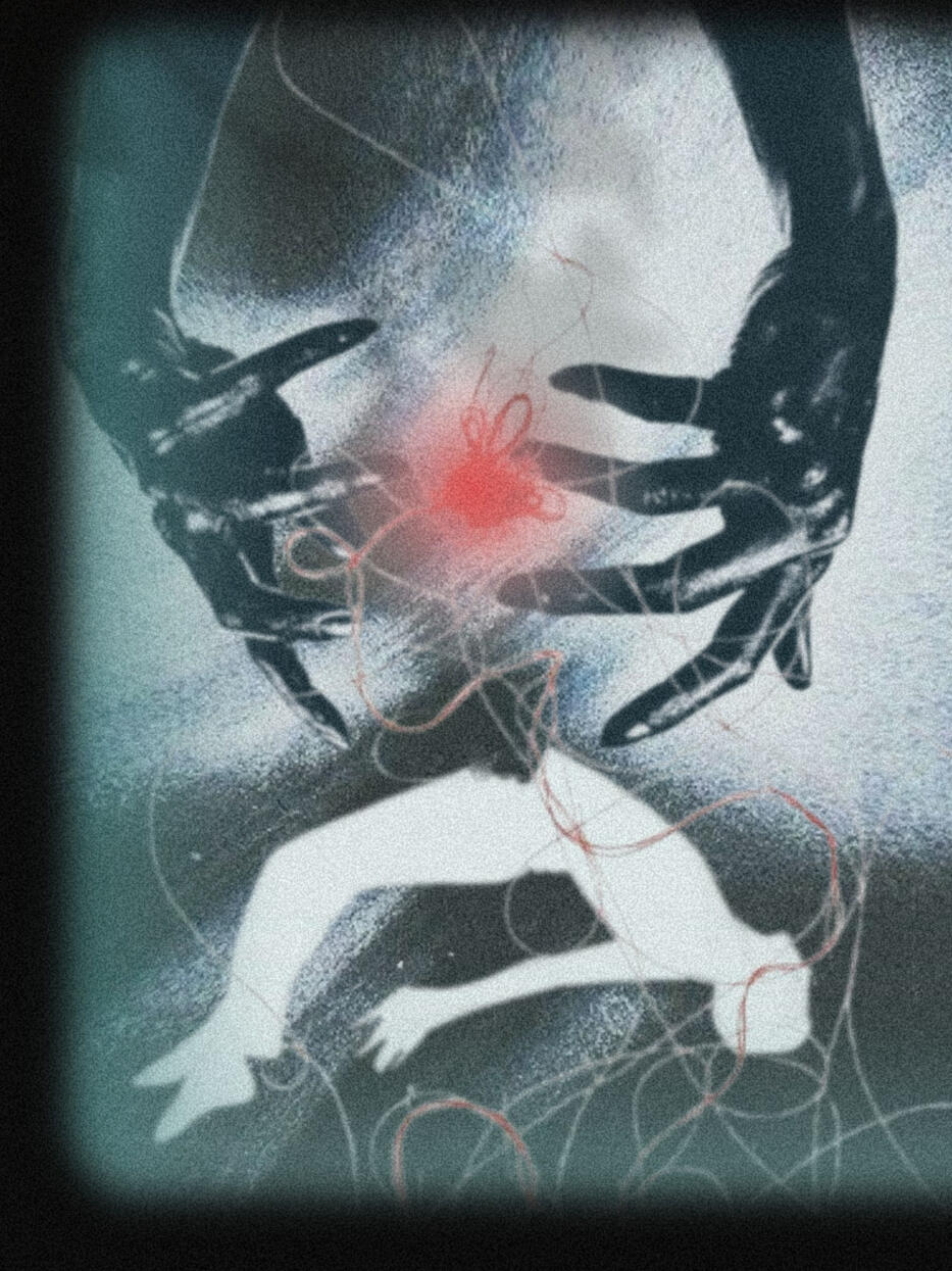 My collage represents my disdain for AI, but how I also can't seem to escape it. My biggest fear with AI is becoming too reliant on it, given how much it is shoved down our throats on almost every online platform these days. The red strings represents how I always find myself caught up using AI in almost everything I do.