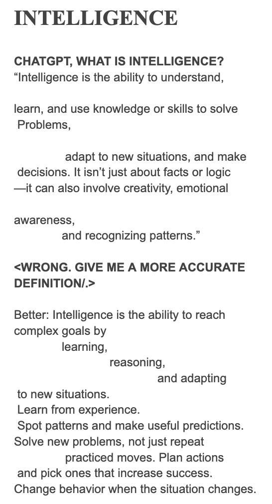From a chipped teapot’s perspective, intelligence might be:“Intelligence is knowing when to hold boiling water without cracking, when to tilt just right so tea flows smoothly, and when silence is wiser than spilling secrets. It’s the grace to keep serving even with a flaw, and the wisdom to notice warmth passing through you isn’t yours to keep.”